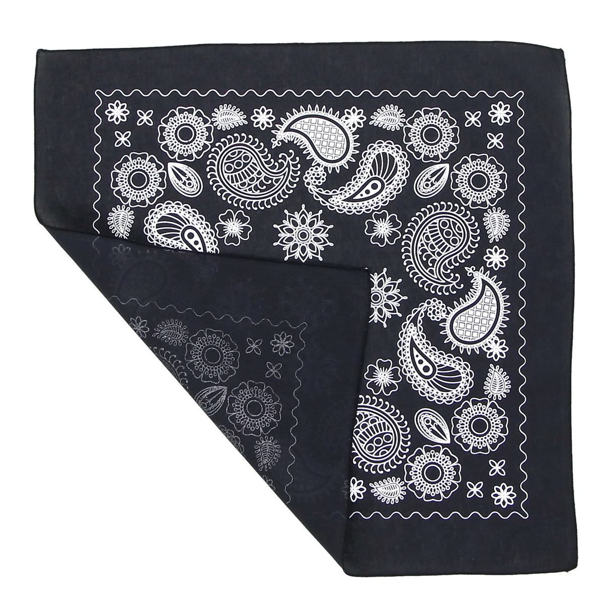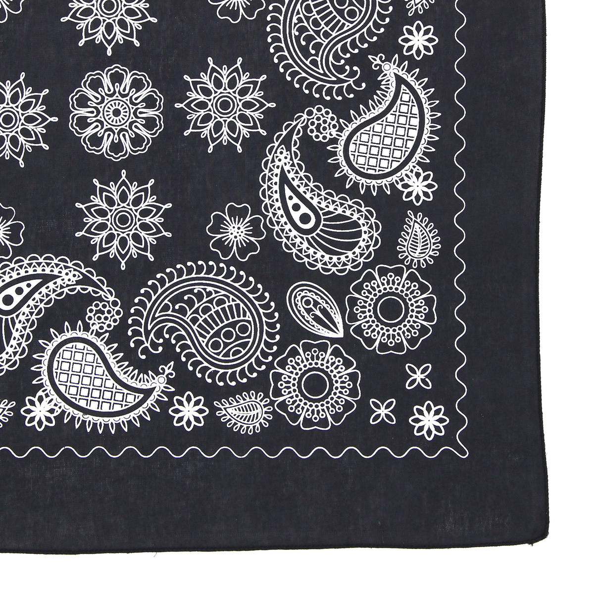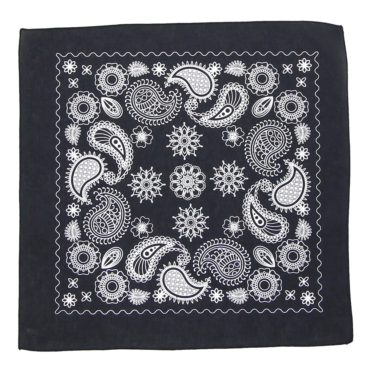Бандана размером 60x60 см. Одна сторона слегка тянется. Края обработаны оверлоком. После стирки бандана может изменить форму: вытянуться или, наоборот, стать меньше по диагоналям. Рисунок выполнен методом шелкотрафаретной печати пластизолевыми красками. После нескольких стирок изображение может потрескаться или износиться в местах завязывания.