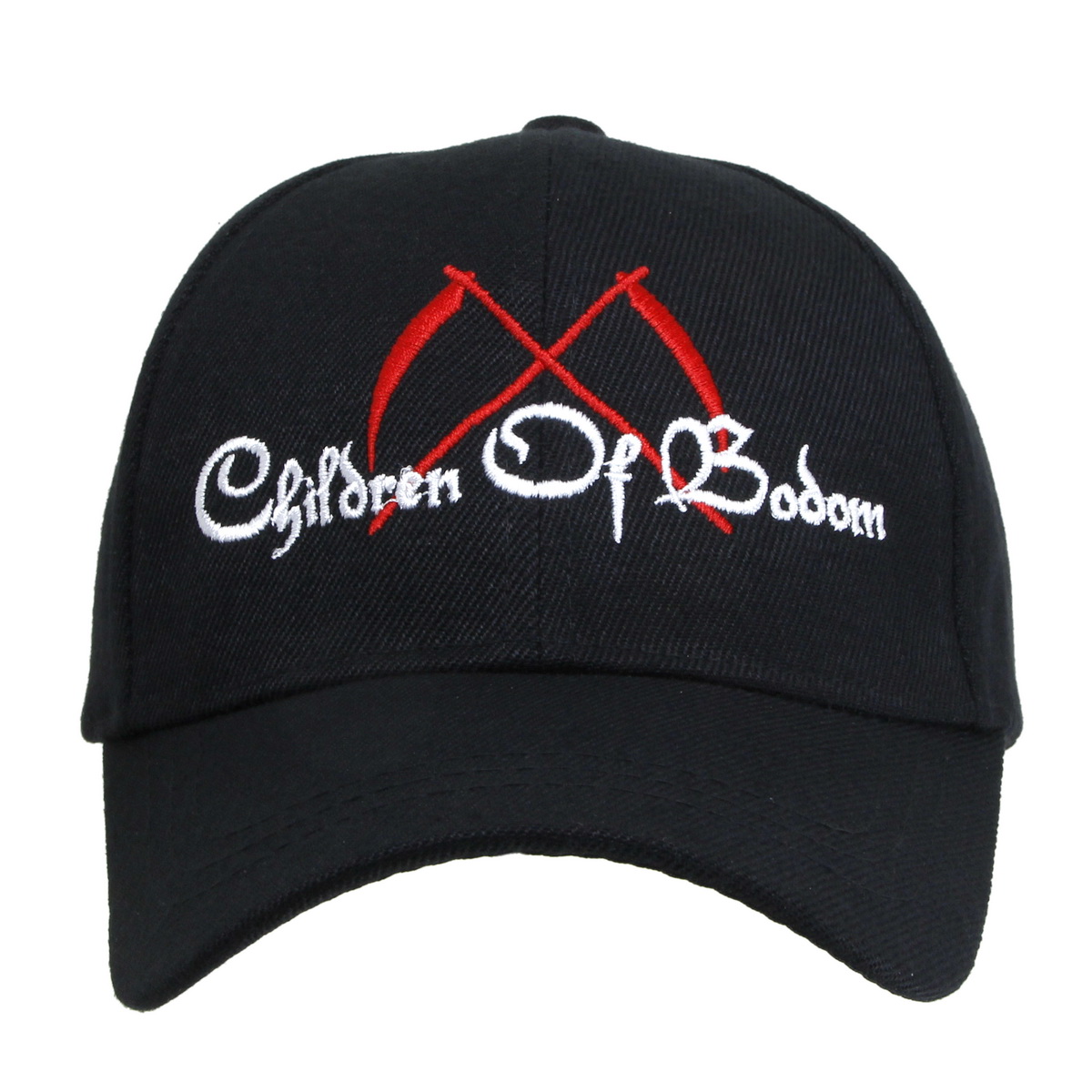 Бейсболка текстильная с вышивкой Children of Bodom. Объем бейсболки ( размер от 55 до 59 ) можно регулировать с затылка при помощи специальной застежки бакл. Материал бейсболки 100% полиэстер. Козырек жесткий,формованный длиной 6,5 см. Глубина бейсболки 12 см +1 см.