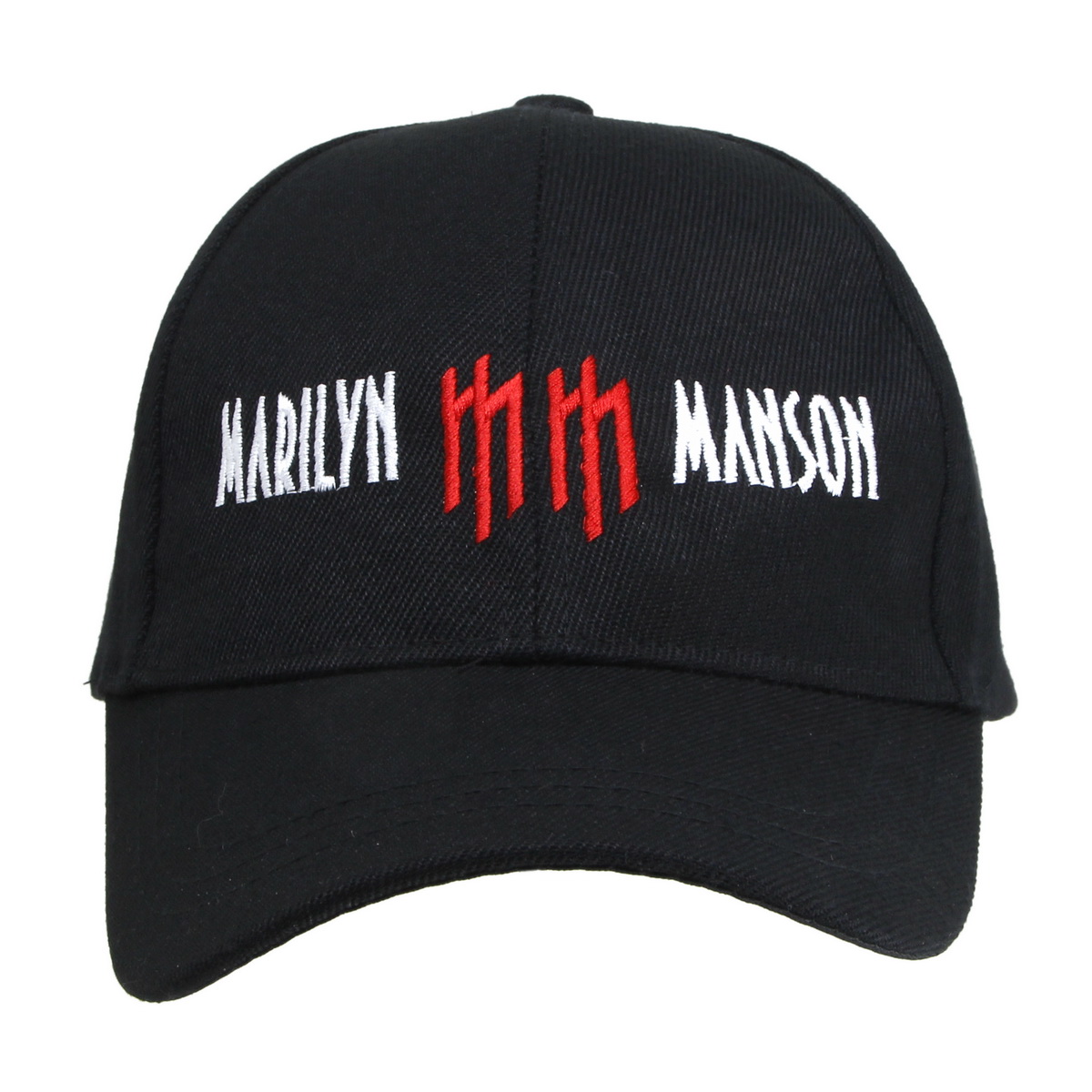 Бейсболка текстильная с вышивкой Marilyn Manson. Объем бейсболки ( размер от 55 до 59 ) можно регулировать с затылка при помощи специальной застежки бакла. Материал бейсболки 100% полиэстер. Козырек жесткий,формованный длиной 6,5 см. Глубина бейсболки 12 см +1 см.
