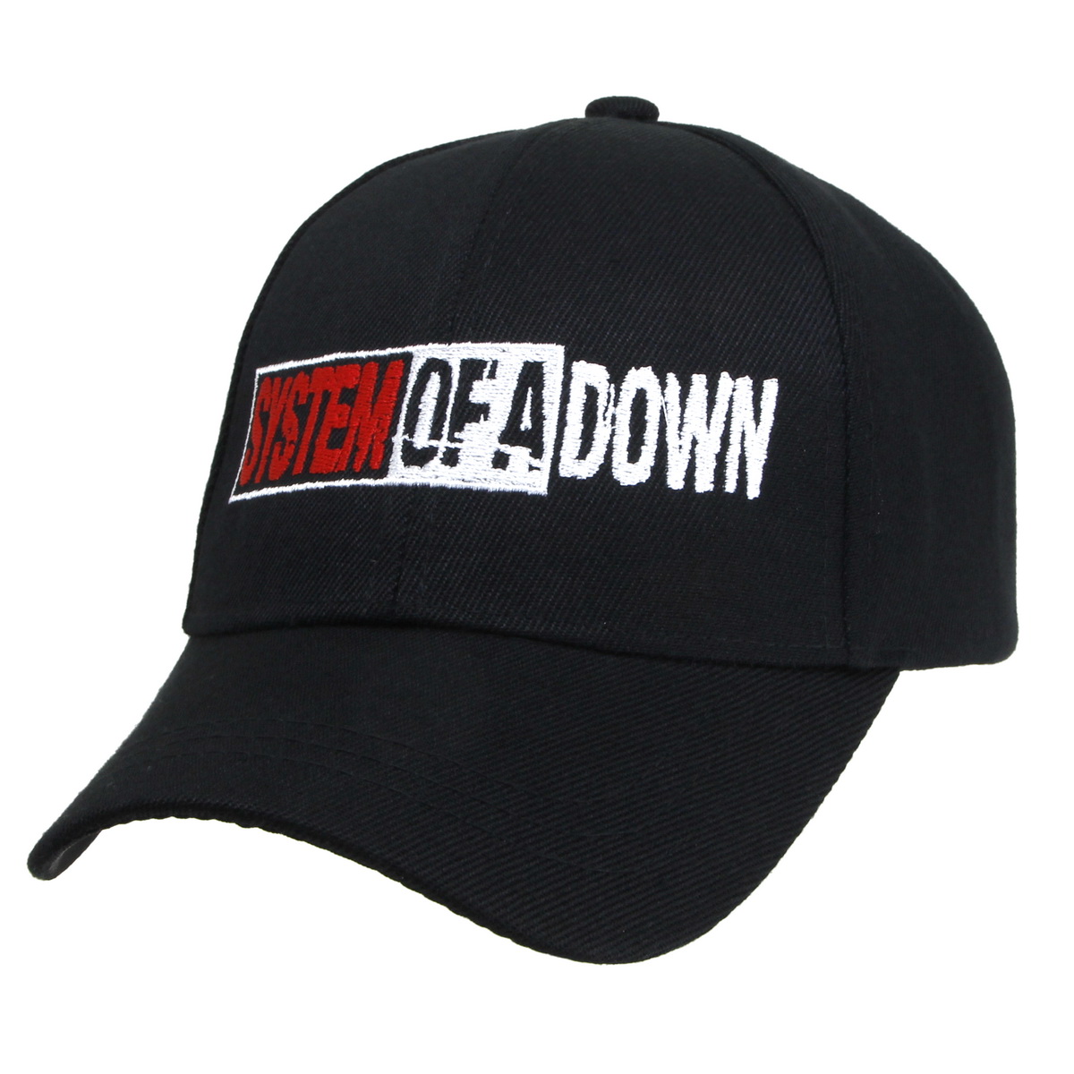 Бейсболка текстильная с вышивкой System of a Down. Объем бейсболки ( размер от 55 до 59 ) можно регулировать с затылка при помощи специальной застежки бакла. Материал бейсболки 100% полиэстер. Козырек жесткий,формованный длиной 6,5 см. Глубина бейсболки 12 см +1 см.
