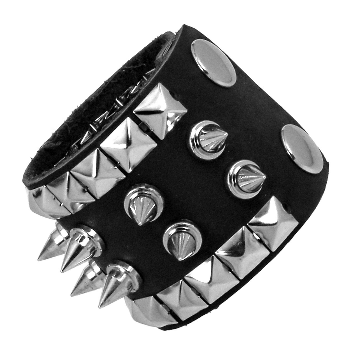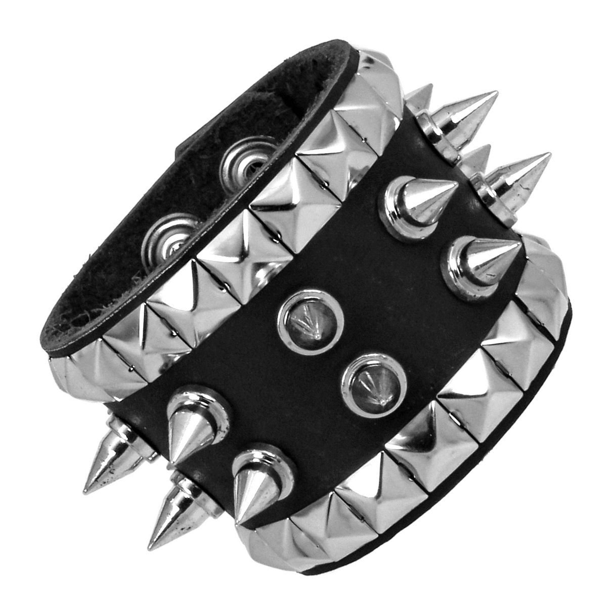 Представляем классический браслет с шипами и квадратами (пирамидами) в два ряда. Он выполнен из мягкой натуральной седельной кожи. Пирамиды прикреплены с помощью загнутых шипов, а металлические шипы зафиксированы винтами. Это делает браслет особенно комфортным. Высота шипов — 1,2 см.