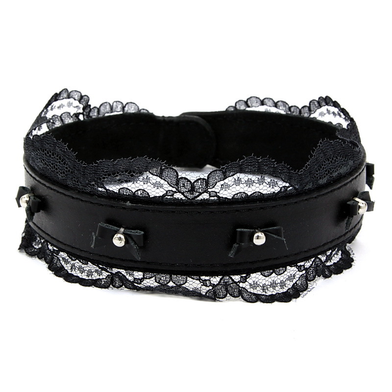 Чокер " Готика-13" кожа + чёрные кружева + 7 круглых клёпок — яркое пополнение коллекции брутальных аксессуаров. Идеально подходит тем, кто готов заявить о своей индивидуальности и стремится эффектно выглядеть в любой ситуации. Стильное изделие (артикул — 72) отлично смотрится с разными предметами гардероба и отличается высокой износостойкостью, а также не причиняет никакого дискомфорта во время носки за счет безупречного исполнения и отменного качества используемых материалов. И все это при вполне доступной цене.