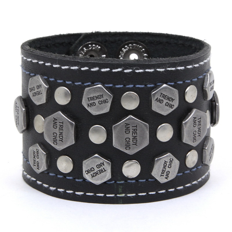 Напульсник Tic-Tack ( Болты и кнопки шахматкой ) — стильный и удобный аксессуар, который станет идеальным дополнением брутального образа. Для его изготовления используется кожа отличной выделки, поэтому о появлении потертостей и других косметических дефектов можно не волноваться на протяжении длительного времени. Модель (артикул НК153) не боится негативных воздействий среды. Если вы являетесь ярым фанатом тяжелой музыки или представителем неформальной культуры, непременно купите такое кожаное изделие для пополнения коллекции стилизованной атрибутики.