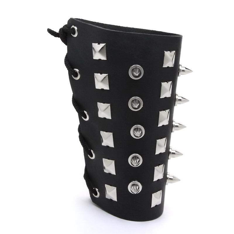 Наруч 3 р шип + 4 р пирамида, шнуровка, 17 см — стильный и удобный аксессуар, который станет идеальным дополнением брутального образа. Для его изготовления используется кожа отличной выделки, поэтому о появлении потертостей и других косметических дефектов можно не волноваться на протяжении длительного времени. Модель (артикул 7032001) не боится негативных воздействий среды. Если вы являетесь ярым фанатом тяжелой музыки или представителем неформальной культуры, непременно купите такое кожаное изделие для пополнения коллекции стилизованной атрибутики.