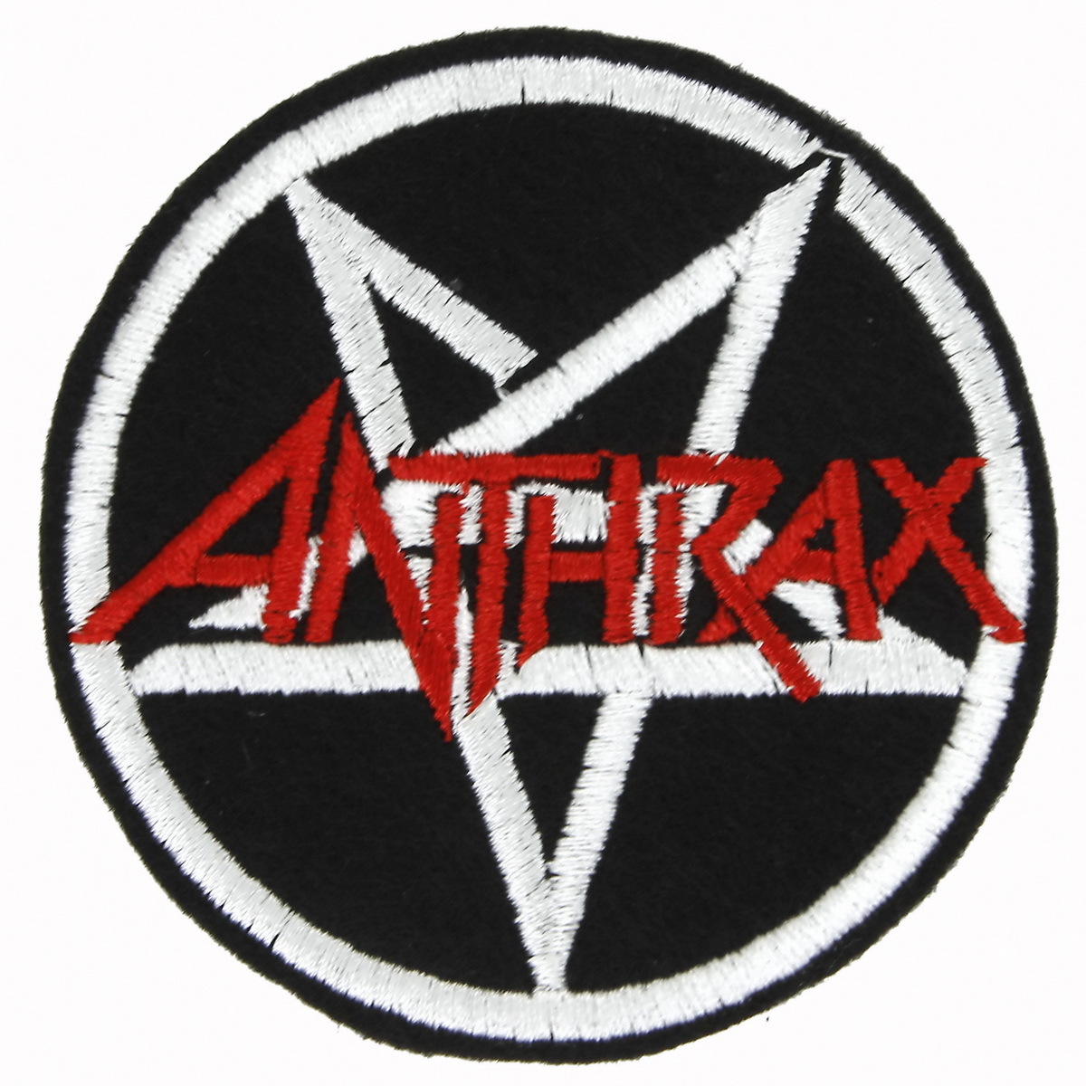 Нашивка с вышивкой группы Anthrax. Материал изделия полиэстер ( шевронная ткань, фетр ). Размер нашивки 75 х 75 мм.