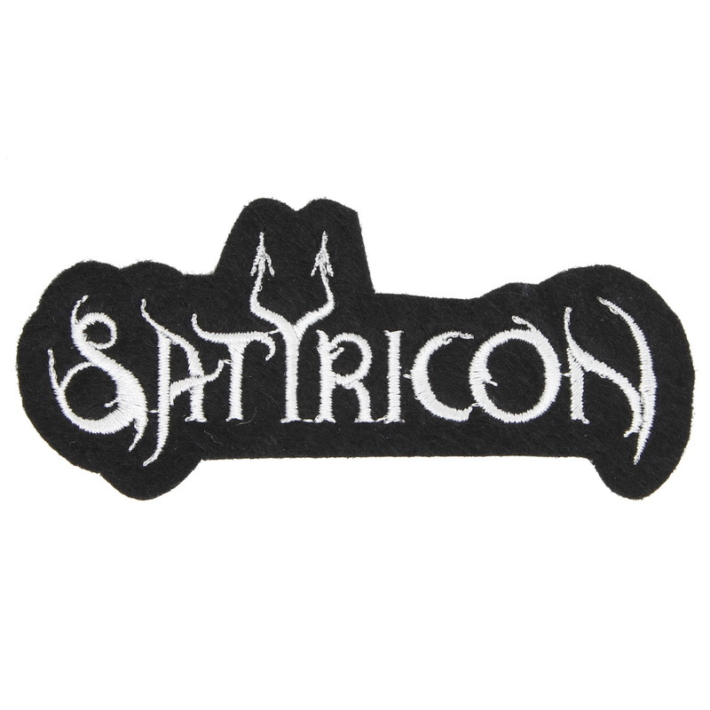 Нашивка с вышивкой группы Satyricon. Материал изделия полиэстер ( шевронная ткань, фетр ). Размер нашивки 40 х 100 мм.