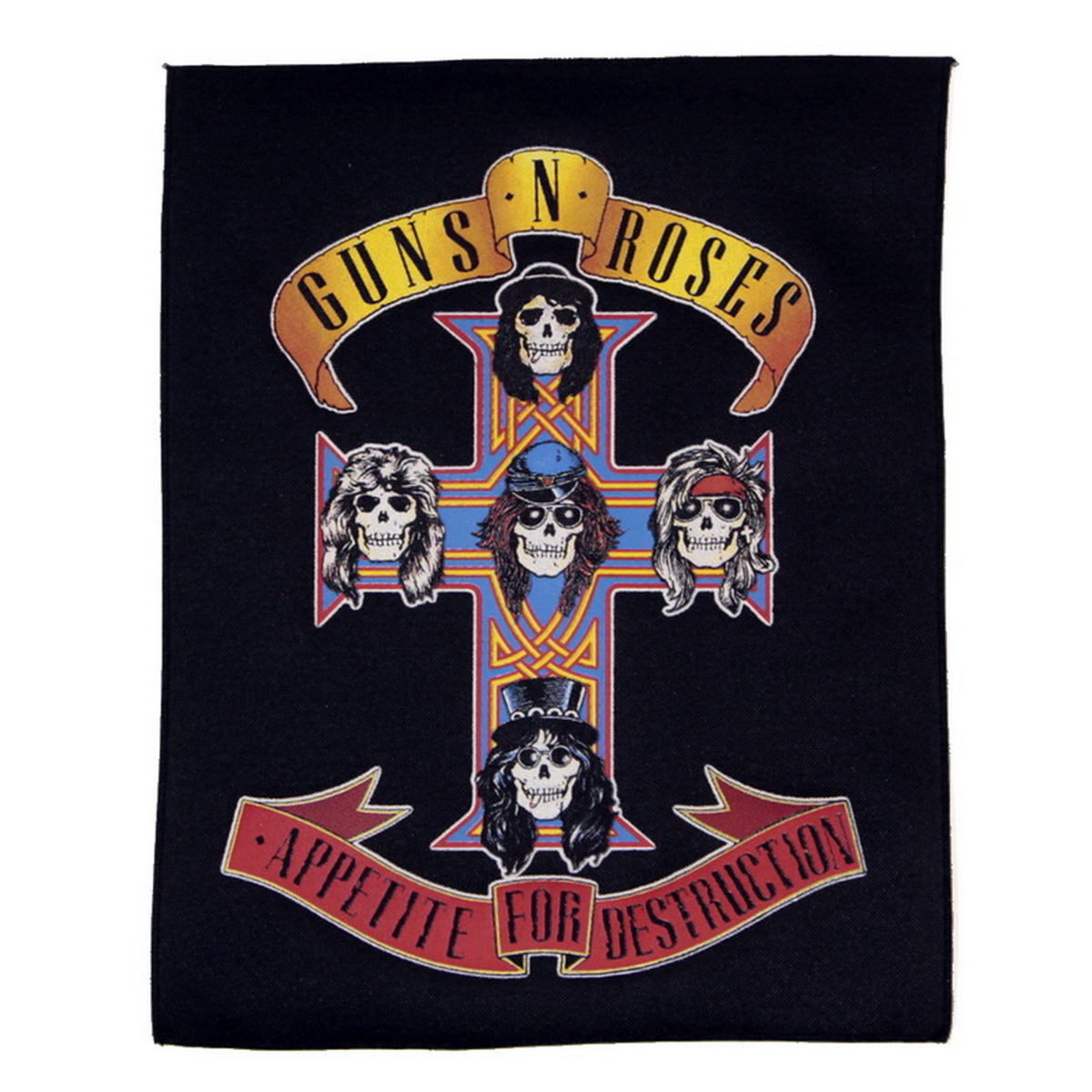 Нашивка спиновая группы Guns N' Roses. Материал нашивки — полиэстер. Изображение нанесено методом шелкографии. Размер нашивки: длина — 30 см, ширина — 38 см. Нашивка крепится к одежде методом пришивания. Следует помнить, что цвет изделия на фотографии может немного отличаться от цвета реального товара. Это связано с искажением цветопередачи экрана монитора или телефона, настройками фотоаппаратуры и другими факторами.