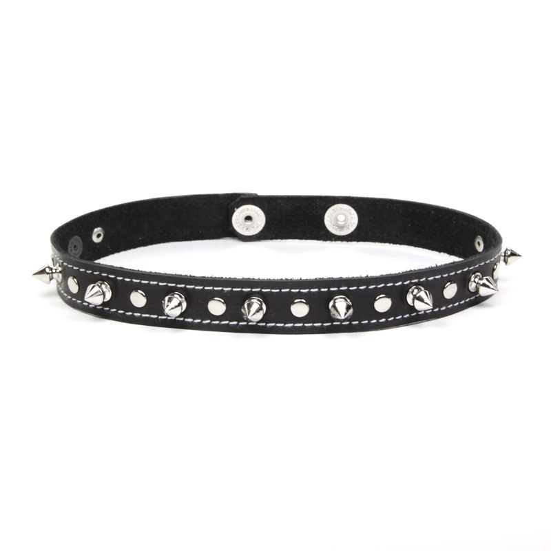 Ошейник с пиками и кнопками — идеальный выбор для ценителей неформального стиля, яркого, привлекающего внимание и вместе с тем подчеркивающего индивидуальность. Броский дизайн изделия дополняется солидным запасом прочности. Украшение (артикул — 7050178) долго выглядит так, будто его только что купили, даже при интенсивной носке. Все благодаря высокому качеству материалов и безупречному исполнению. С его помощью можно создать множество оригинальных образов.