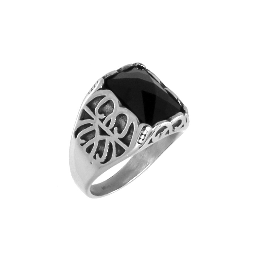 Стальной перстень с черным камнем лучший подарок для современного неформального мужчины. Этот перстень не подведет в повседневной носке, так как изготовлен из медицинской, нержавеющей стали 316L по международной классификации.