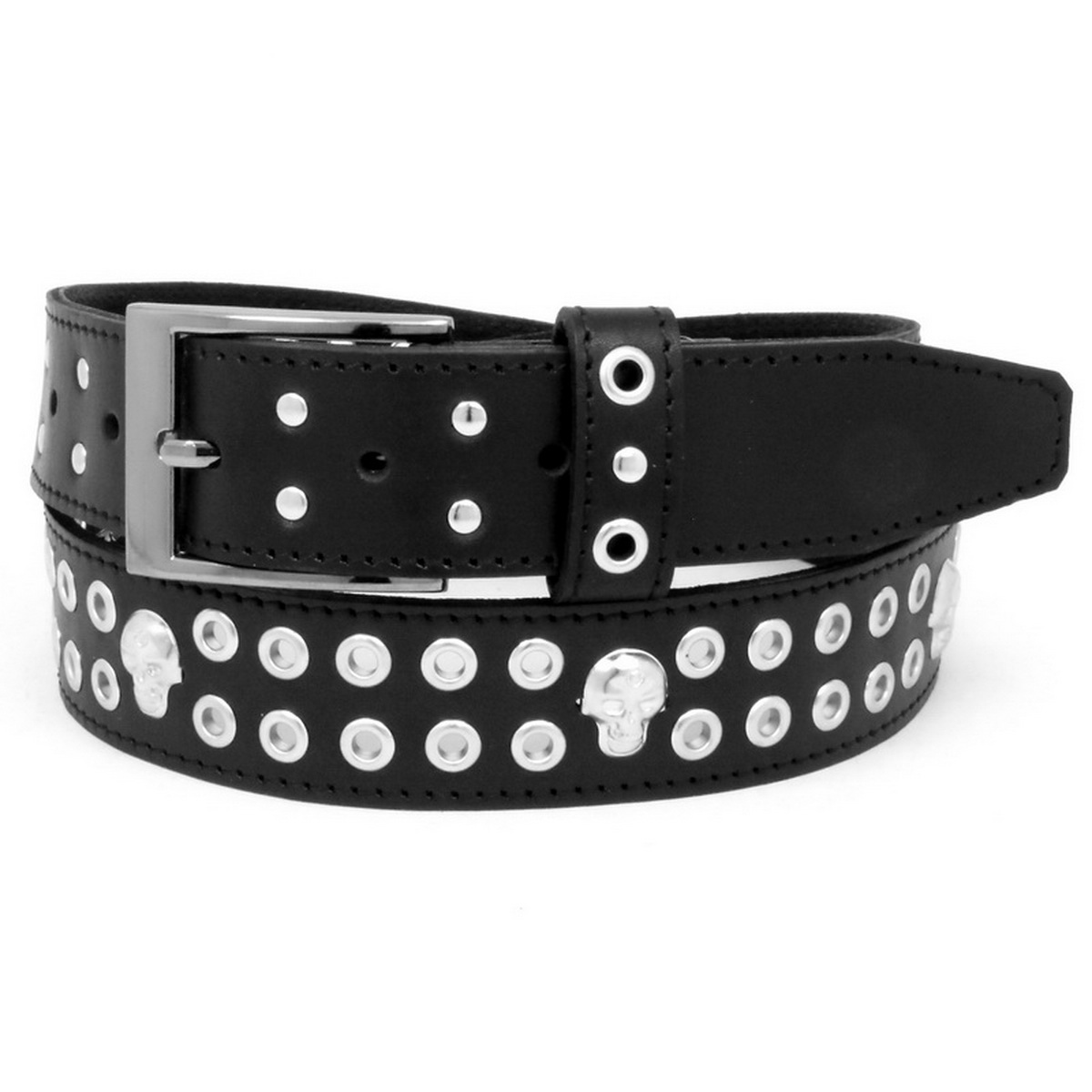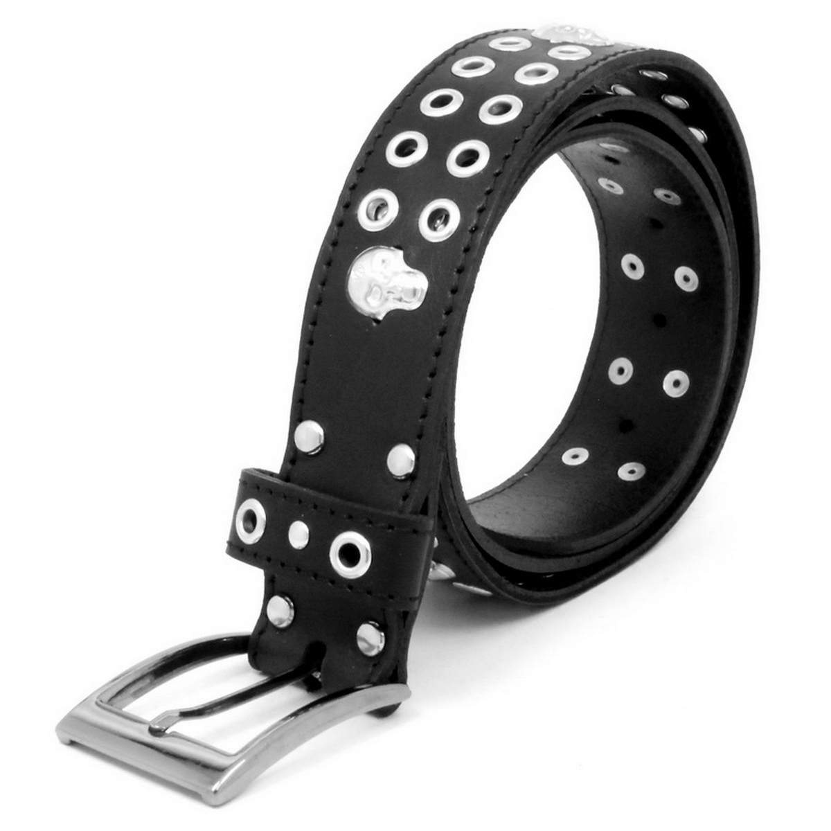 Ремень люверс 2 ряда + череп (черная нить) (136)
