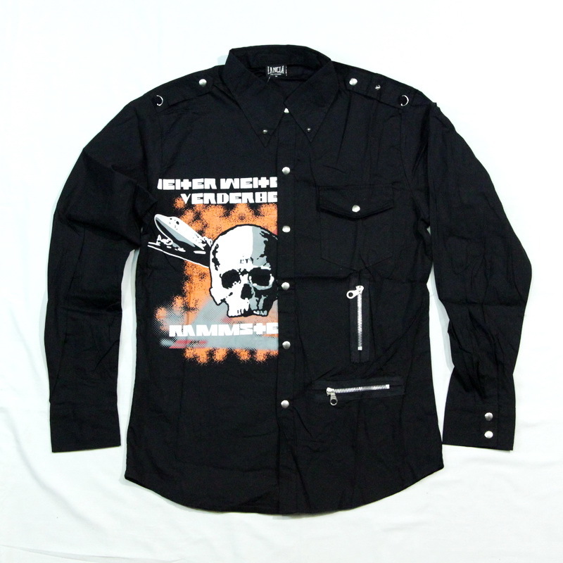 Стильные мужские рубашки с рок-символикой.Состав материала - плотная хлопковая ткань 65%, и 35% эластан. Рубашку удобно носить, она не мнется, рисунок выполнен с помощью шелкографии - он устойчив к стрирке и не выгорает на солнце.