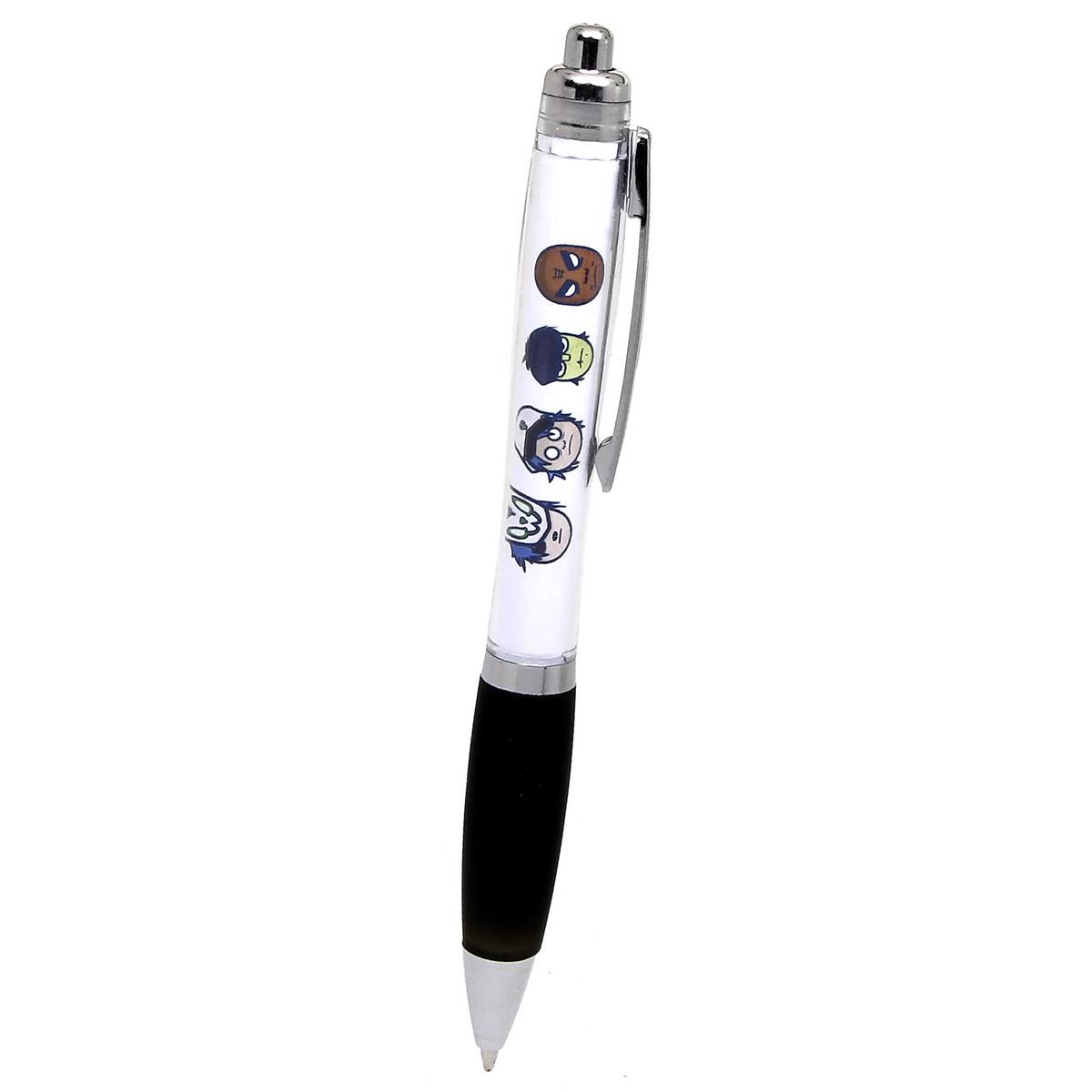 Любителям рока мы предлагаем стильную шариковую ручку с синими чернилами. Пластиковый корпус и автоматический механизм делают её удобной и долговечной. Диаметр металлического узла с шариком — 2,2 мм, поэтому толщина линии составляет 0,5 мм. Можно легко заменить стержень длиной 99 мм.