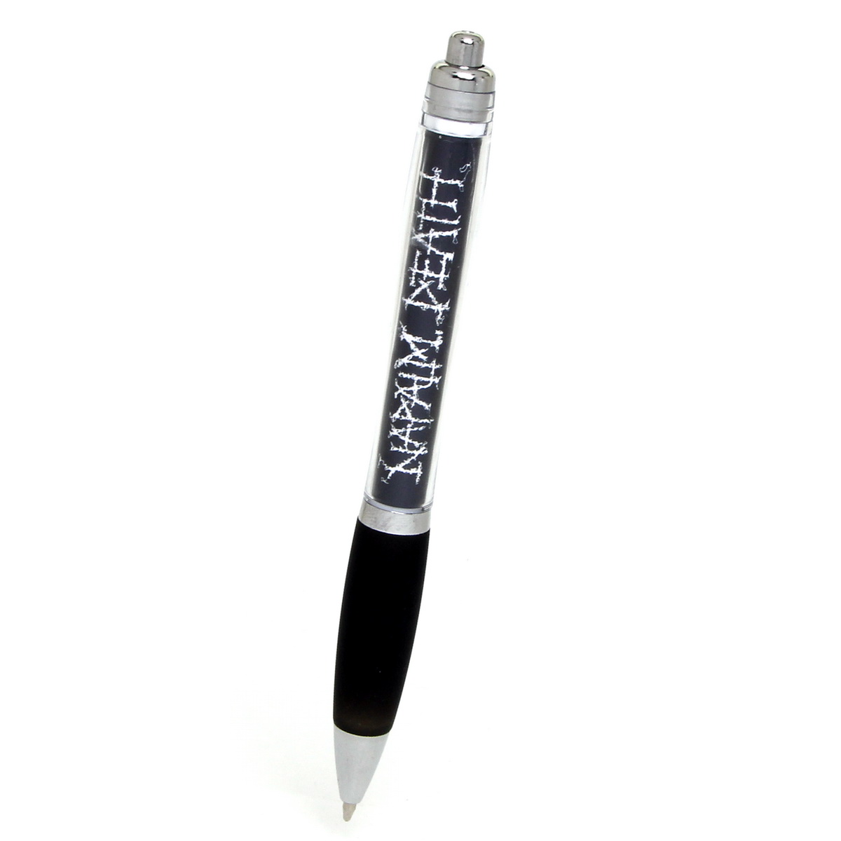 Любителям рока мы предлагаем стильную шариковую ручку с синими чернилами. Пластиковый корпус и автоматический механизм делают её удобной и долговечной. Диаметр металлического узла с шариком — 2,2 мм, поэтому толщина линии составляет 0,5 мм. Можно легко заменить стержень длиной 99 мм.