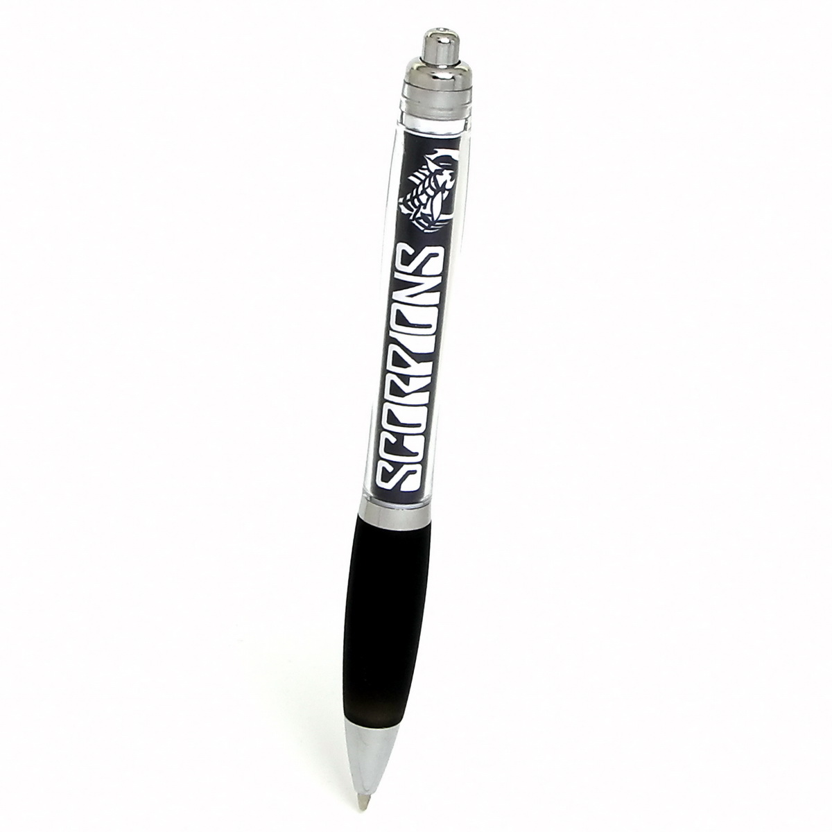 Любителям рока мы предлагаем стильную шариковую ручку с синими чернилами. Пластиковый корпус и автоматический механизм делают её удобной и долговечной. Диаметр металлического узла с шариком — 2,2 мм, поэтому толщина линии составляет 0,5 мм. Можно легко заменить стержень длиной 99 мм.