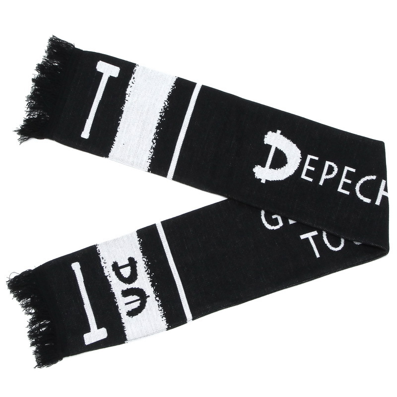 Представляем вашему вниманию зимний шарф Depeche Mode с жаккардовым рисунком и бахромой. Этот шарф изготовлен из высококачественной акриловой пряжи на промышленных вязальных машинах. Он сложен пополам по длине и сшит.