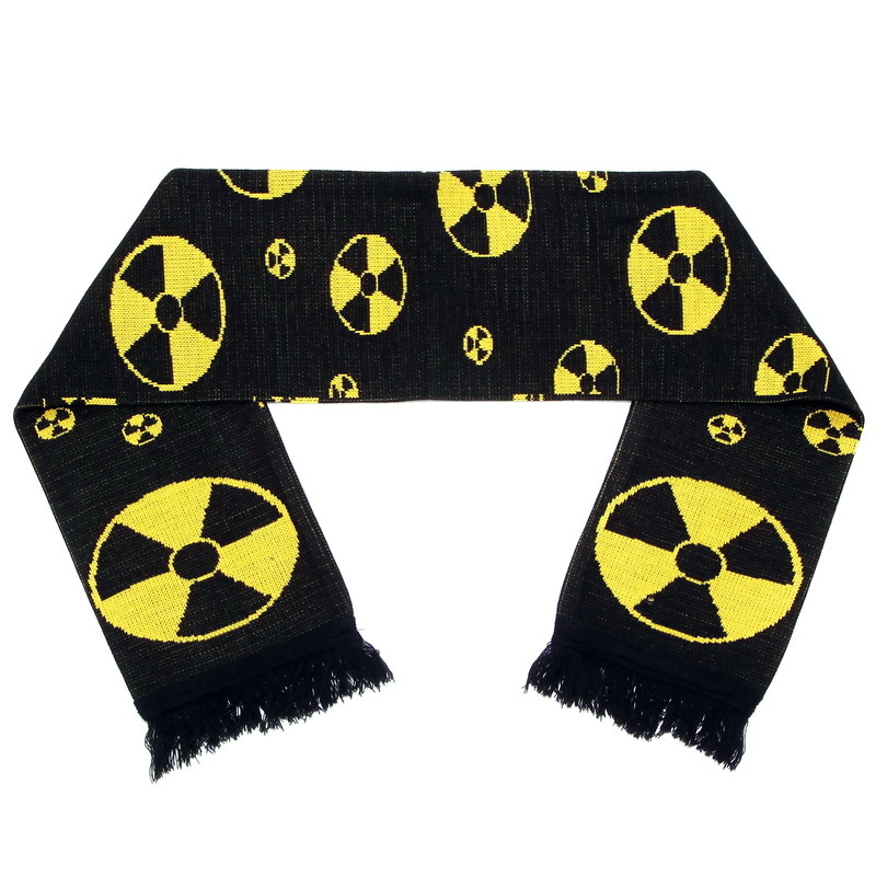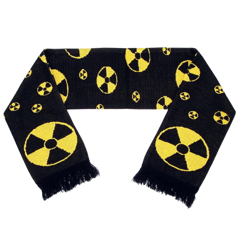 Представляем вашему вниманию зимний шарф Радиация с жаккардовым рисунком и бахромой. Этот шарф изготовлен из высококачественной акриловой пряжи на промышленных вязальных машинах. Он сложен пополам по длине и сшит.