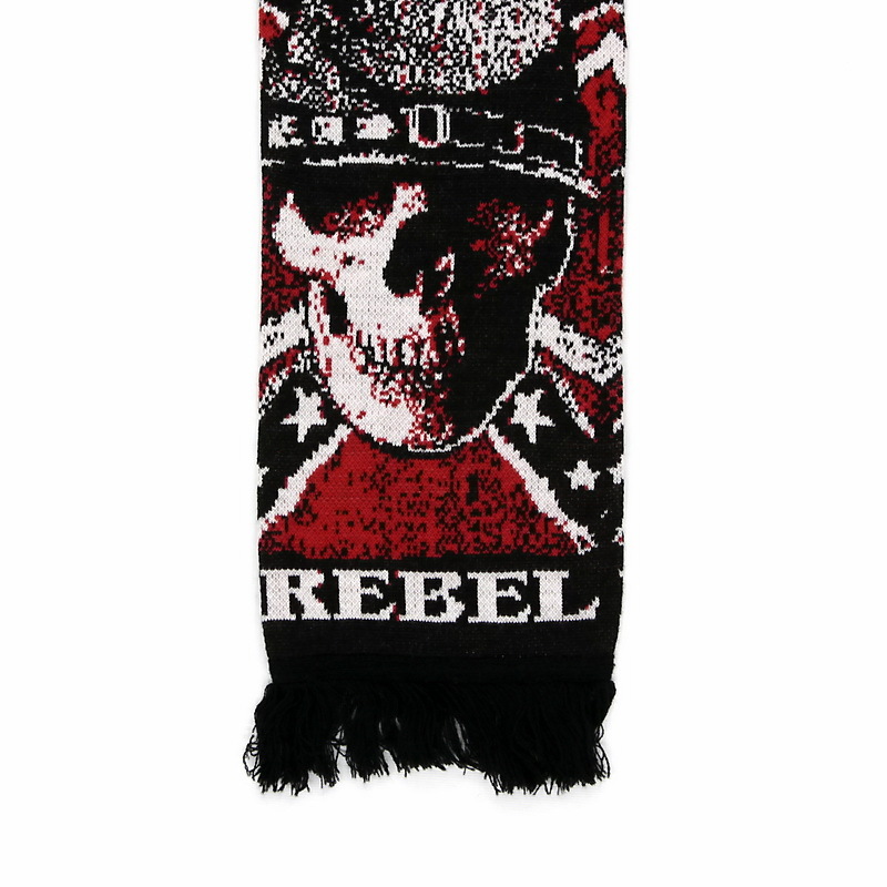 Представляем вашему вниманию зимний шарф Rebel с жаккардовым рисунком и бахромой. Этот шарф изготовлен из высококачественной акриловой пряжи на промышленных вязальных машинах. Он сложен пополам по длине и сшит.