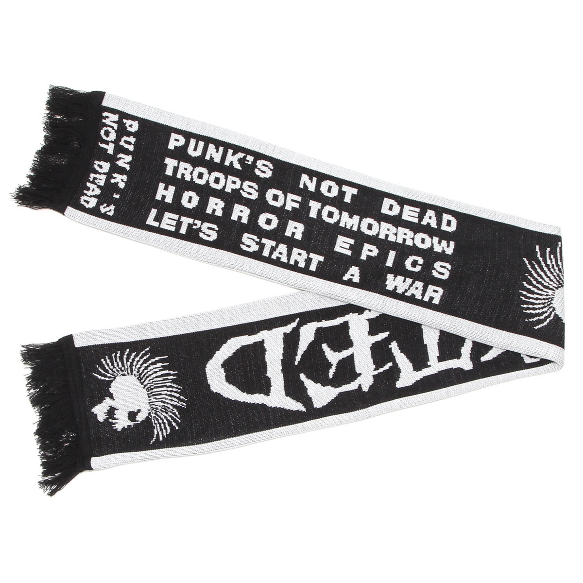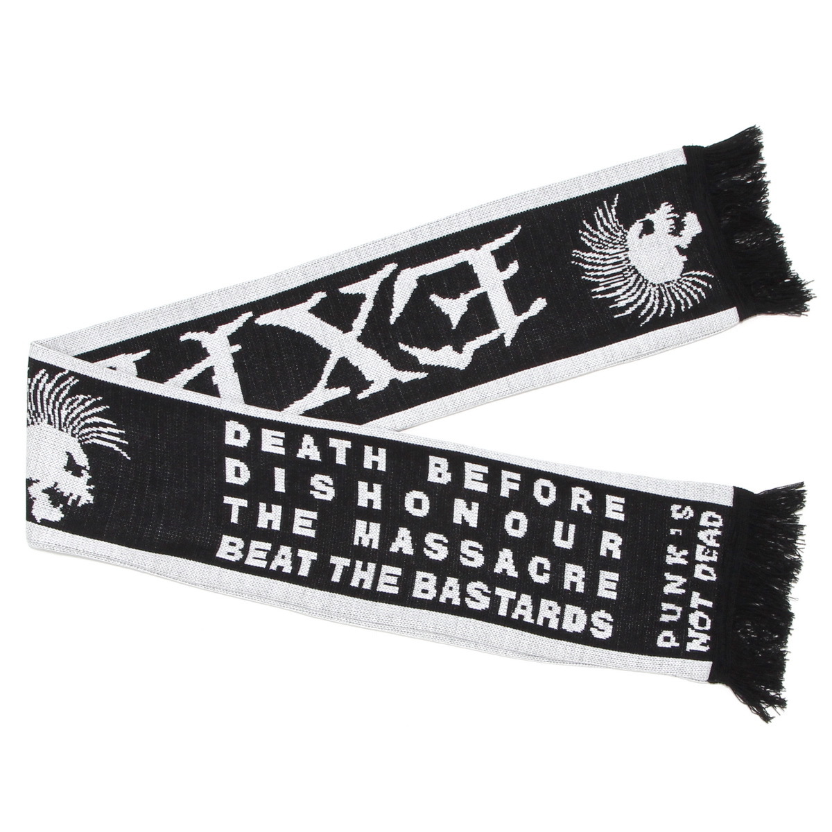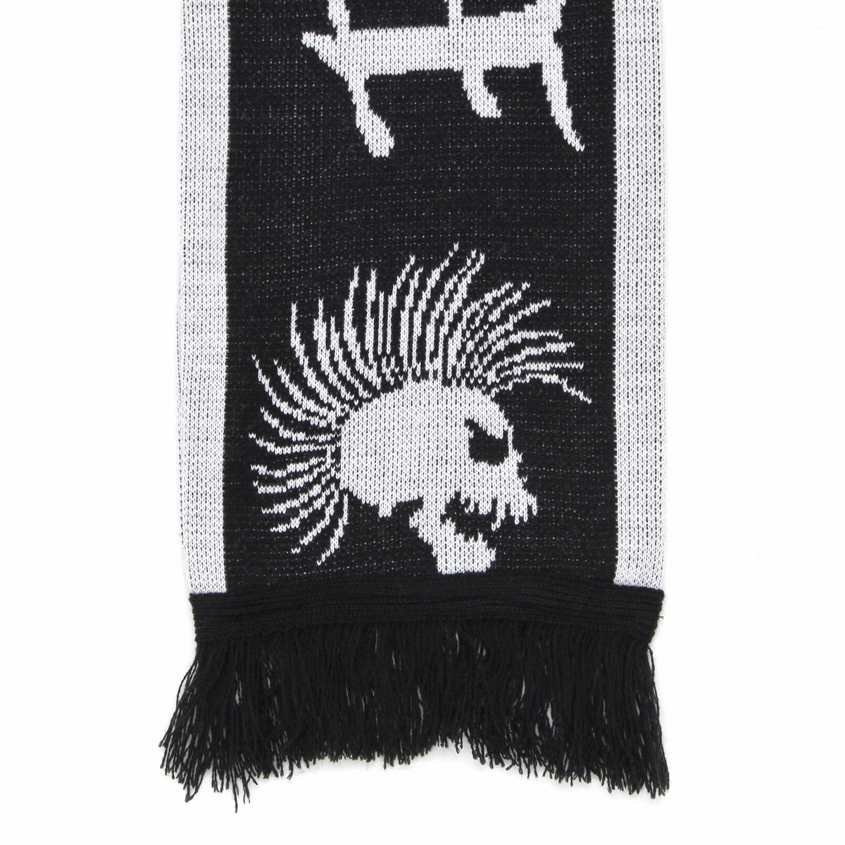 Представляем вашему вниманию зимний шарф The Exploited с жаккардовым рисунком и бахромой. Этот шарф изготовлен из высококачественной акриловой пряжи на промышленных вязальных машинах. Он сложен пополам по длине и сшит.
