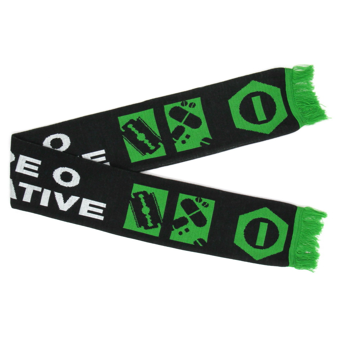 Представляем вашему вниманию зимний шарф Type O Negative с жаккардовым рисунком и бахромой. Этот шарф изготовлен из высококачественной акриловой пряжи на промышленных вязальных машинах. Он сложен пополам по длине и сшит.