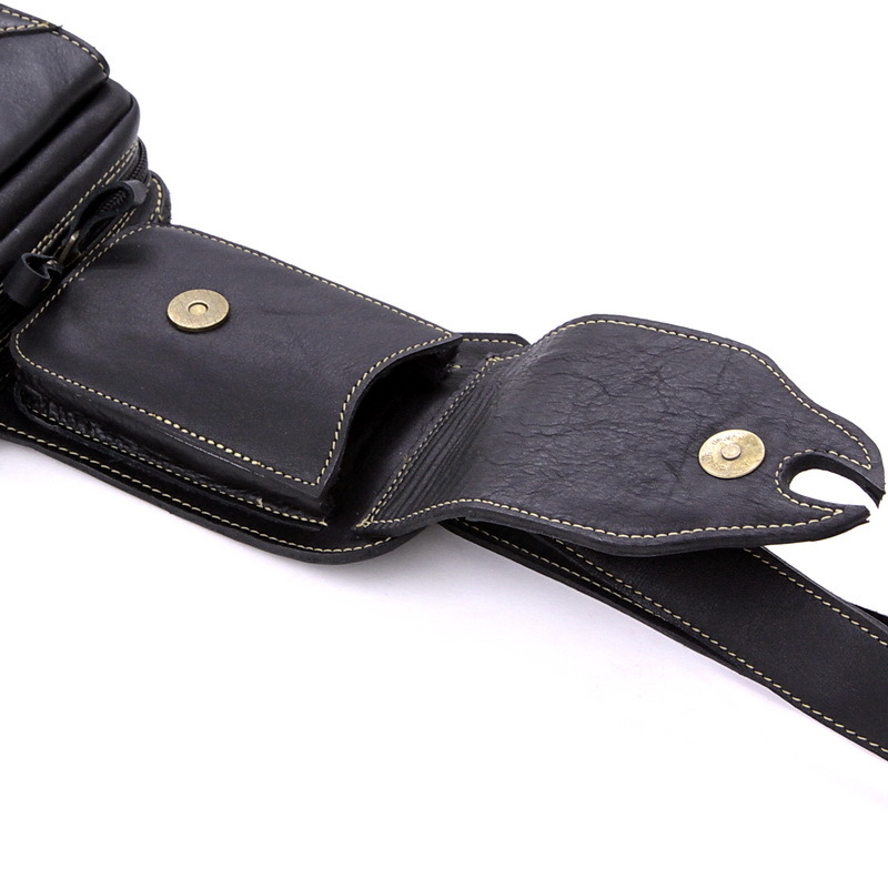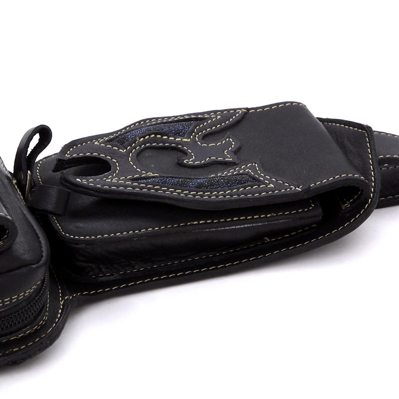 Сумка через плечо (5) — модель с удобной фиксацией и вместительным отделением. Идеальный выбор для любого байкера, который сразу оценит высокое качество кожи и пошива. Это позволяет везде брать аксессуар с собой, не беспокоясь о его быстром износе. Материал вряд ли можно назвать недорогим, но сумма вполне оправданна, так как вещь сохраняет презентабельный вид на протяжении многих сезонов, не требуя при этом никакого особого ухода. Поэтому купить подсумок стоит всем, кто предпочитает практичность и солидность.