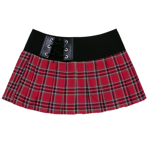 Юбка красная в крупную клетку с чёрным поясом - корсетом (011)