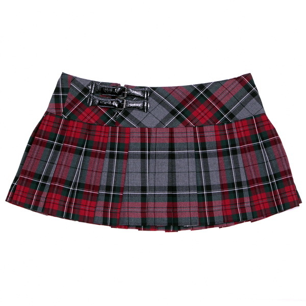 Юбка серая в красную крупную клетку с 2-я ремешками (041)