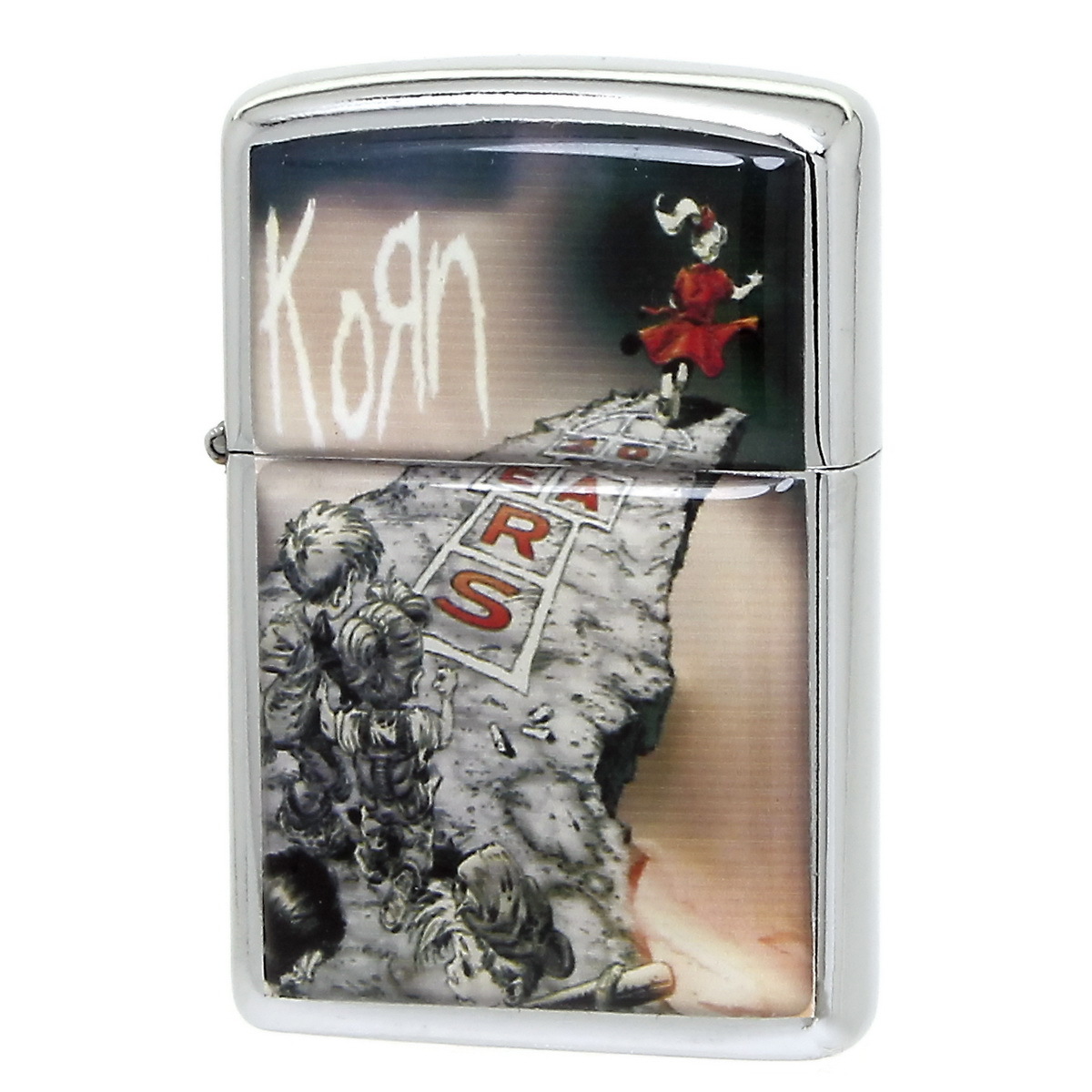 Зажигалка бензиновая группы Korn. Зажигалка поставляется не заправленная. Размер зажигалки 38 х 58 х 15 мм.